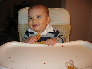 In only the last week Owen has started pulling himself up on things WITHOUT help and on Tuesday morning I went into his room in the morning and he was standing up in his crib. Very pleased with himself I might add.